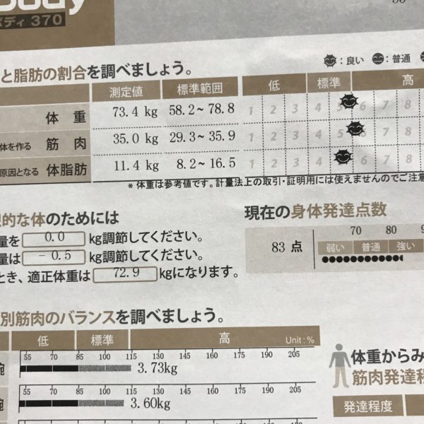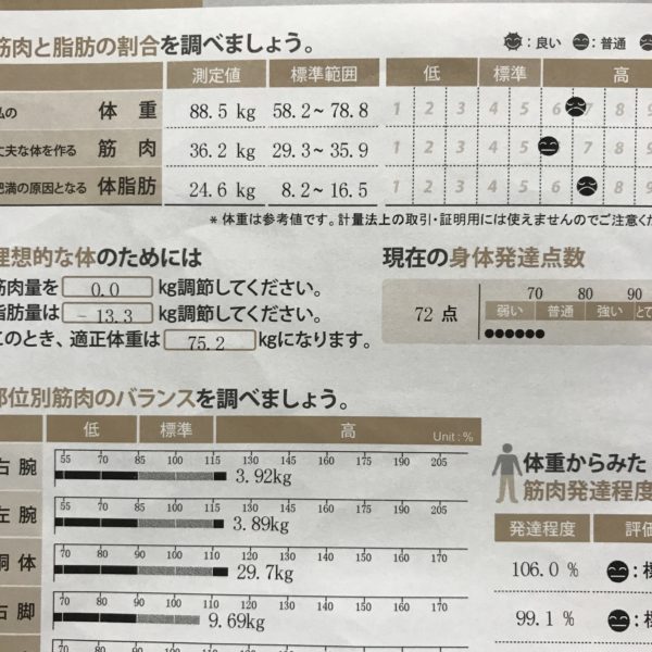 久々にジムで体組成計測してきたのですが、目標の15kg減量達成していました!