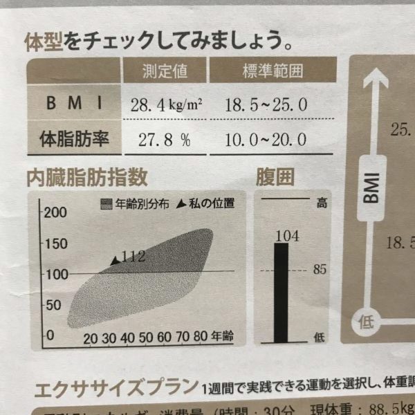 ↓ちなみに減量に入る前はこんな感じでした。体脂肪率に加えて腹囲も酷すぎですね、不健康極まりない状態でした(笑)