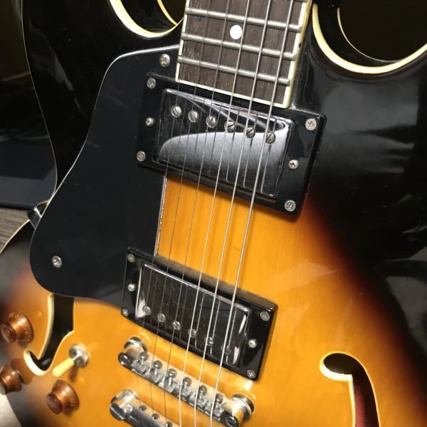 さて、写真は左利き用のギター。(左右反転写真では無いですよ(笑))