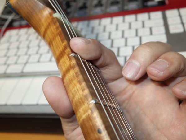 ②人差し指斜め側面での正確な押弦