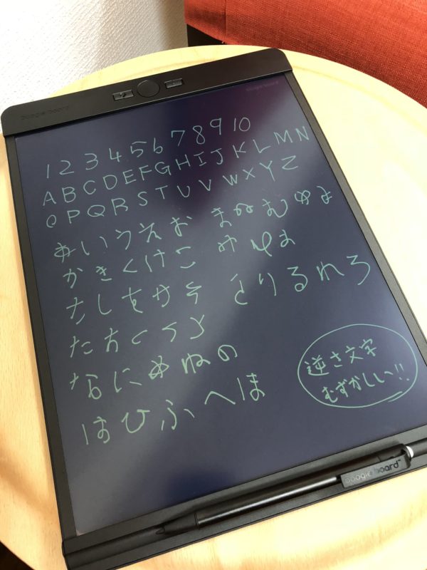 導入ついでにレッスンの合間に逆さ文字の練習。