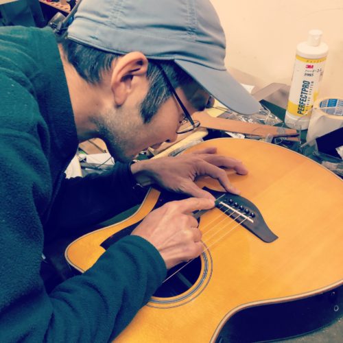 先日、大阪阿倍野にある中川弦楽器製作所さんへ久しぶりに伺う機会が有り、用事がてら教室の貸しギターもメンテナンスして頂きました。