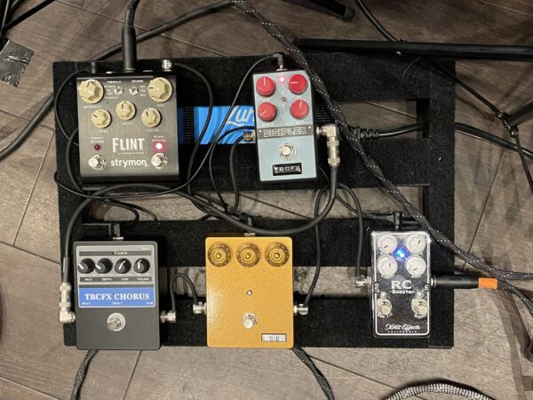 特に最近お気に入りのMastertoneのEOD(下段真ん中)、これが最高に気持ちの良い歪み系エフェクターなんです。
