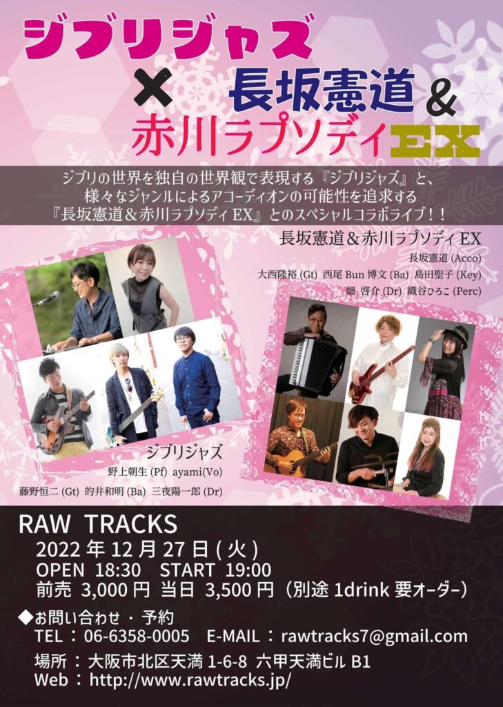 さて、来月12月27日(火)に、大阪市北区天満のRAW TRACKSで久しぶりのライブを行います。